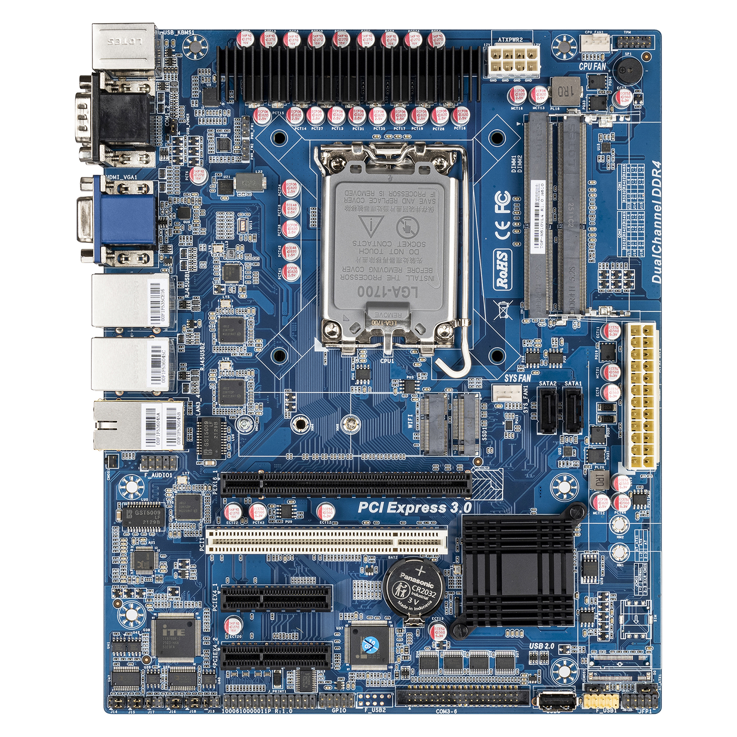 Intel? 12th 13th 14th Gen Core? i9/i7/i5/i3 LGA1700 ATX with VGA/HDMI, 6 COM, 4USB 3.0, 5USB 2.0 ,4 LAN